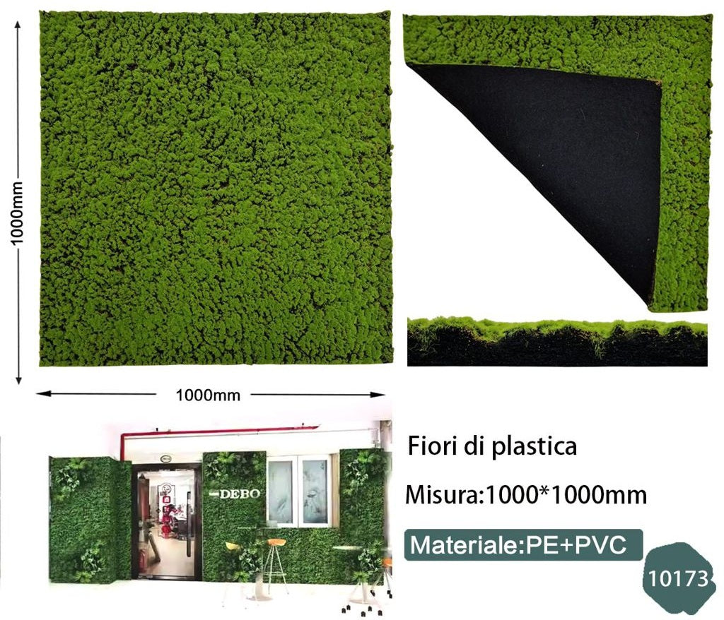 Scopri i nostri esclusivi pannelli di muschio artificiale 100x100 cm, realizzati in materiali di alta qualità (PE + PVC ecologico) per un effetto verde realistico, sempreverde e raffinato 🍃.